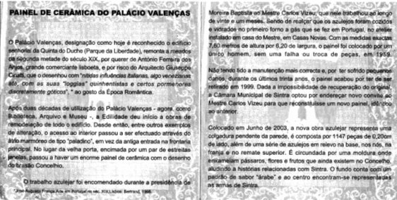 pela Câmara Municipal de Sintra após o restauro do painel cerâmico do