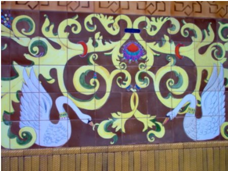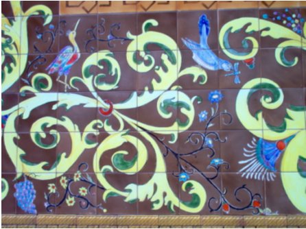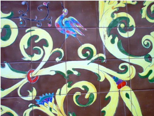 No painel cerâmico, o olhar é atraído em primeiro lugar para o motivo